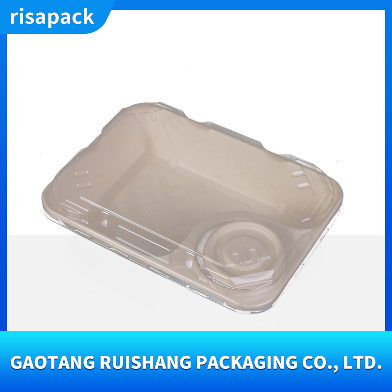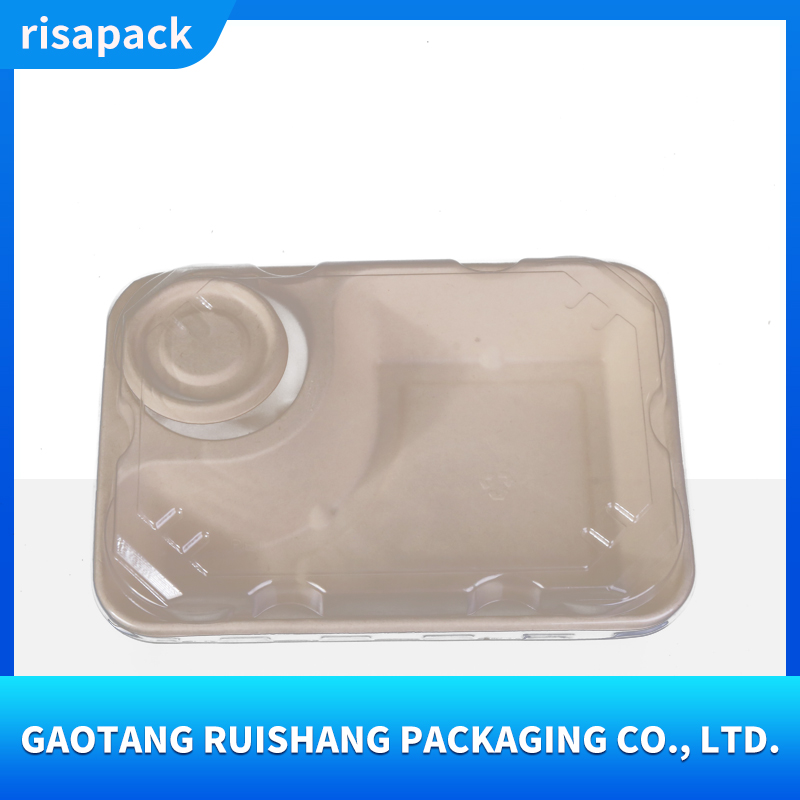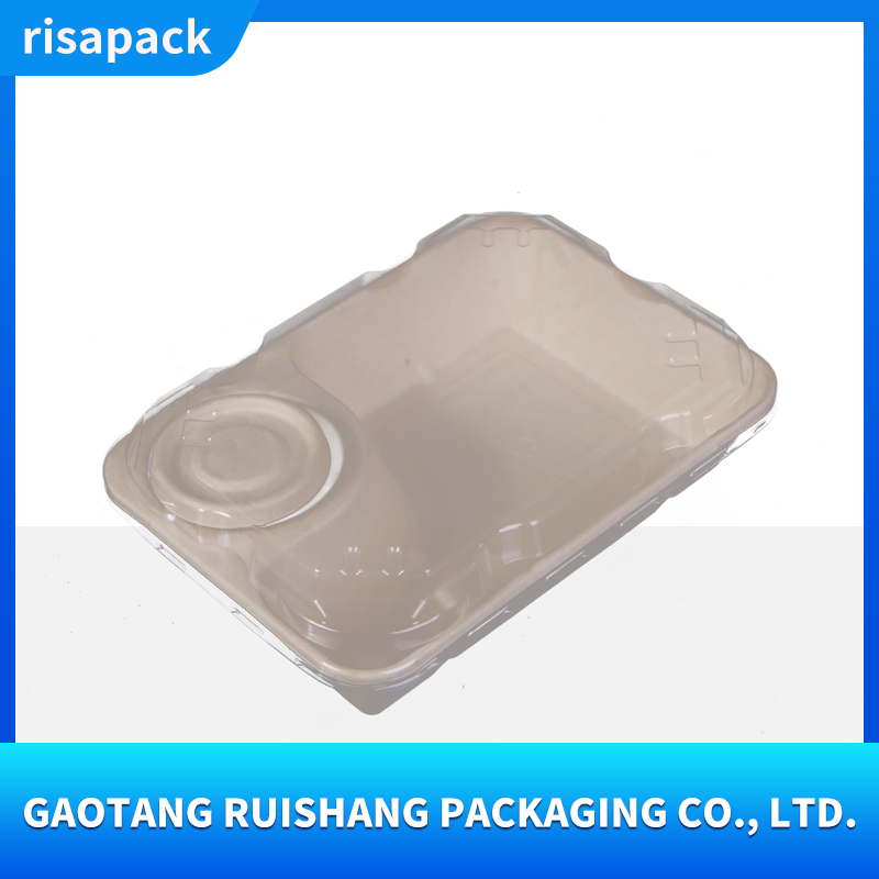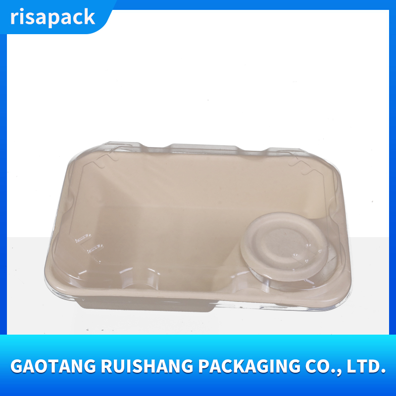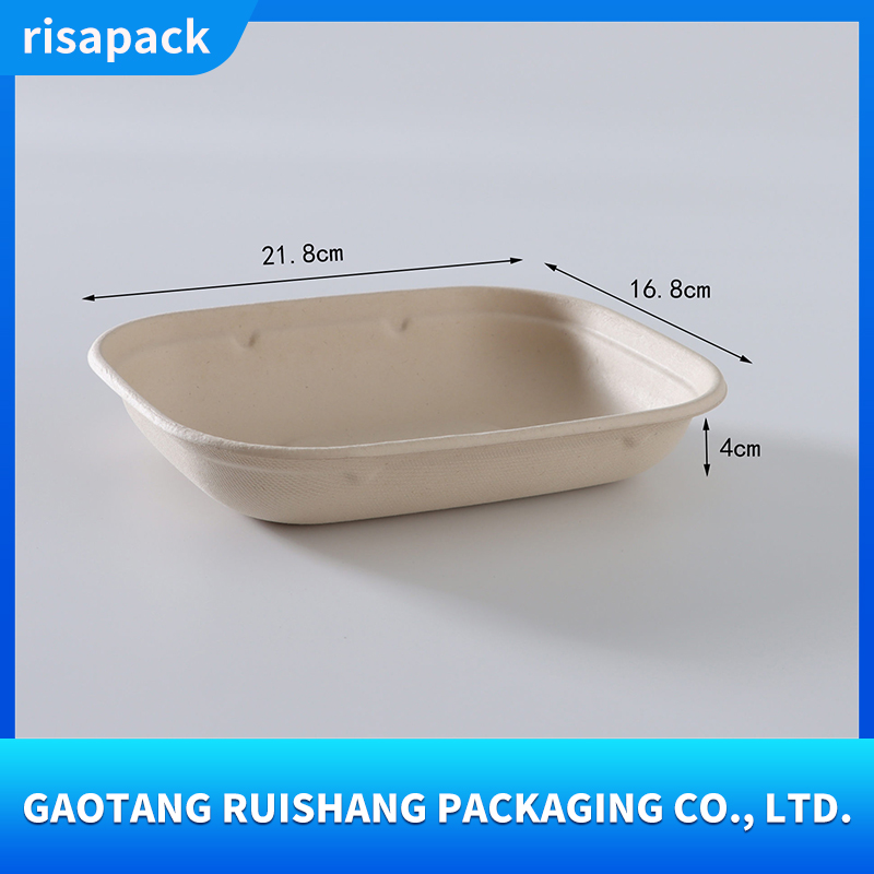 This sugarcane pulp food container uses sugarcane bagasse as its core raw material and is made by pressing natural plant fibers. It is naturally biodegradable and has a wide temperature resistance range from -20℃ to 120℃
