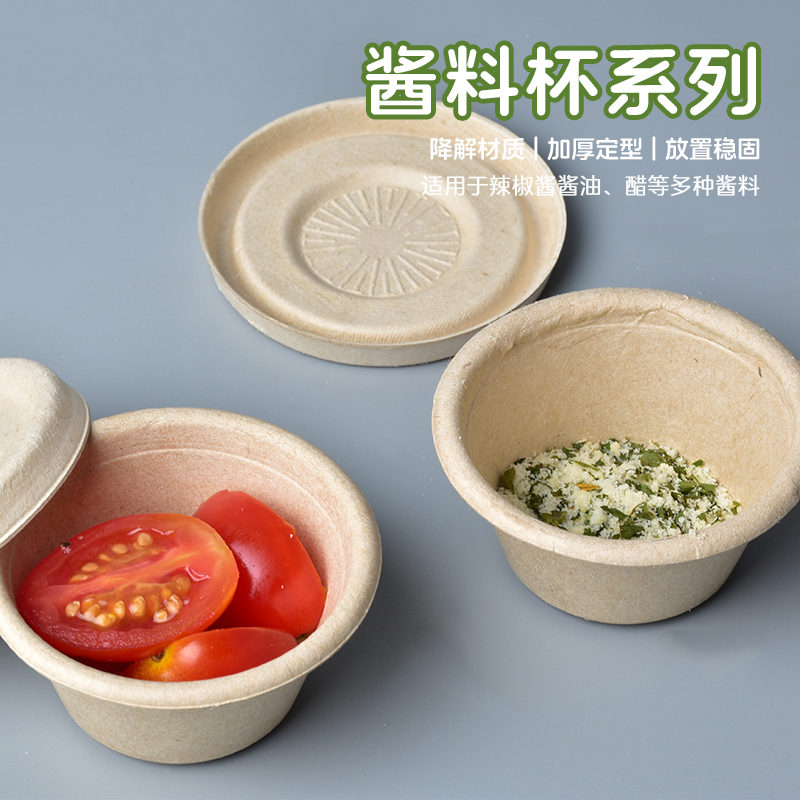 这款甘蔗浆汤杯酱杯以甘蔗渣为核心原料,经天然植物纤维压制而成,自带淡淡甘蔗纤维纹理与浅棕底色,无需化学漂白剂,从源头杜绝有害物质释放,是食品级安全餐具的理想之选。产品可自然降解,埋入土壤3-6个月即可转化为有机肥料,对比传统塑料餐盒,能有效减少白色污染,助力低碳生活,具备-20℃至120℃的宽幅耐温性,可直接放入微波炉加热、冰箱冷藏,盒身挺括不易变形,紧密锁边设计能有效防汤汁渗漏,无论是盛放米饭、汤面还是带汁菜肴都稳固可靠。